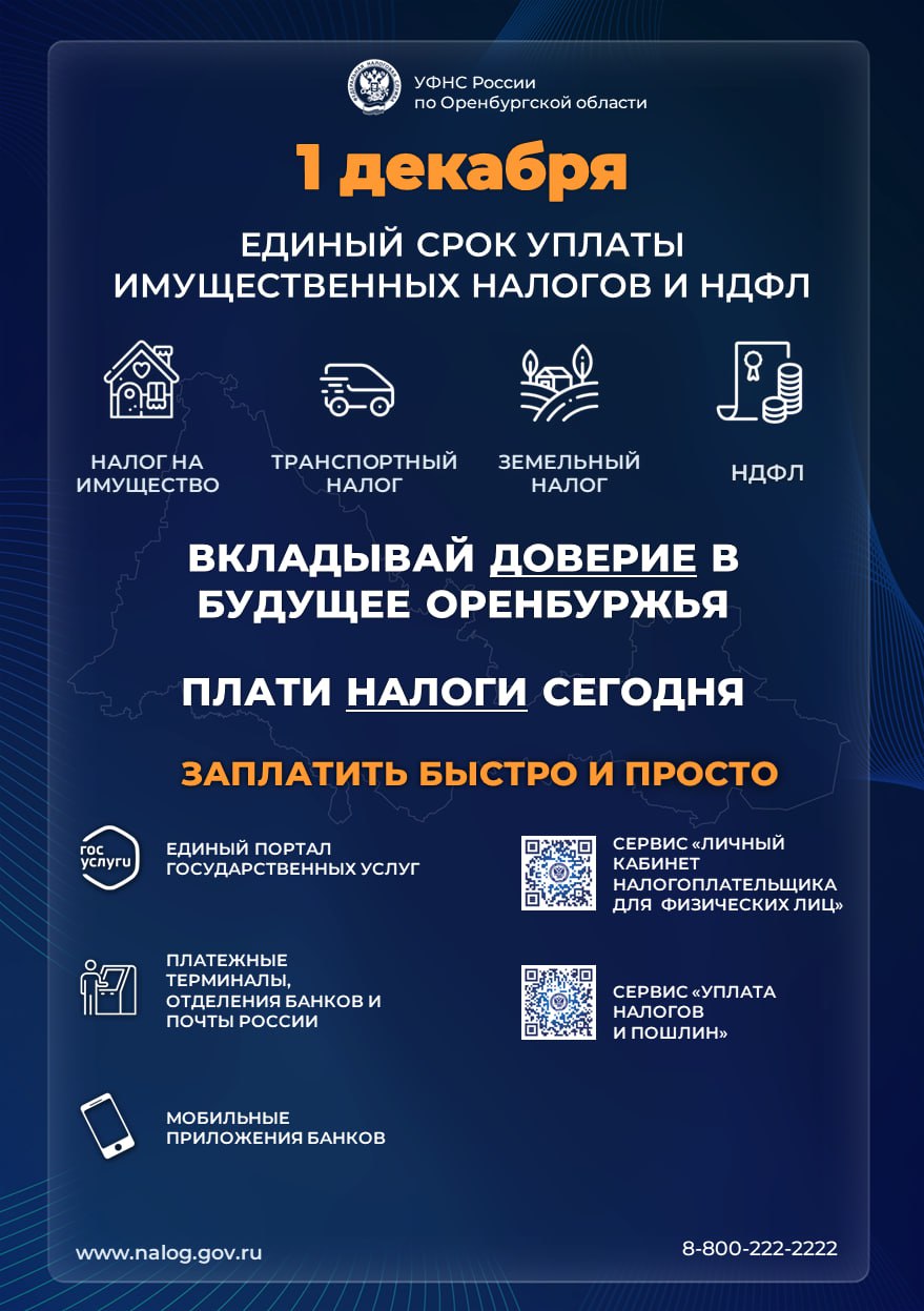 УФНС России по Оренбургской области напоминает об исполнении налоговых уведомлений в 2025 году.